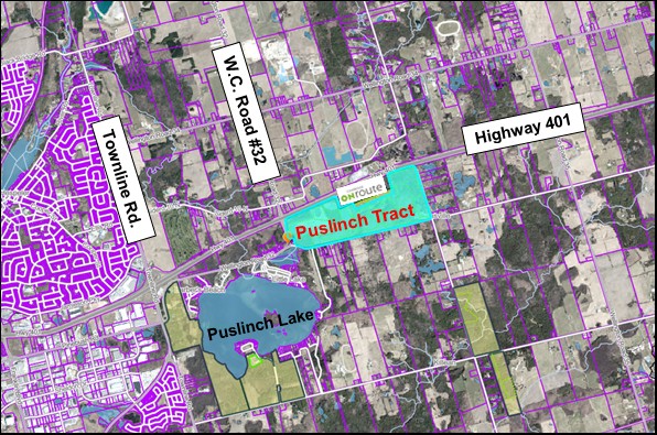 The Puslinch Tract is located along the south side of Highway 401, east of Wellington County Road 32, adjacent to the ON Route service station (see Figure 1).