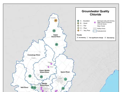 - Rising chloride levels are an issue for 28 municipal drinking water wells. These wells are in urban areas where road salt and water softeners are more prevalent. The Grand River Source Protection Plan policies help protect these wells from further impacts.