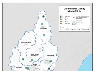 - Rising nitrate levels are an issue for 19 municipal drinking water wells in Waterloo Region, Guelph, and Brant County. The Grand River Source Protection Plan policies help protect these wells from further impacts.